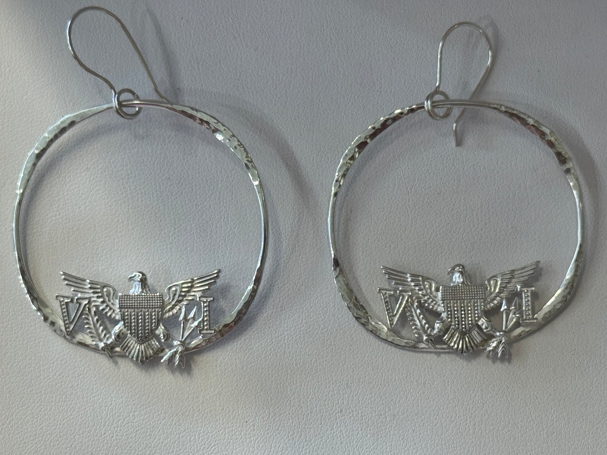 Hand crafted VI flag hoop earrings 2 inches in diameter.