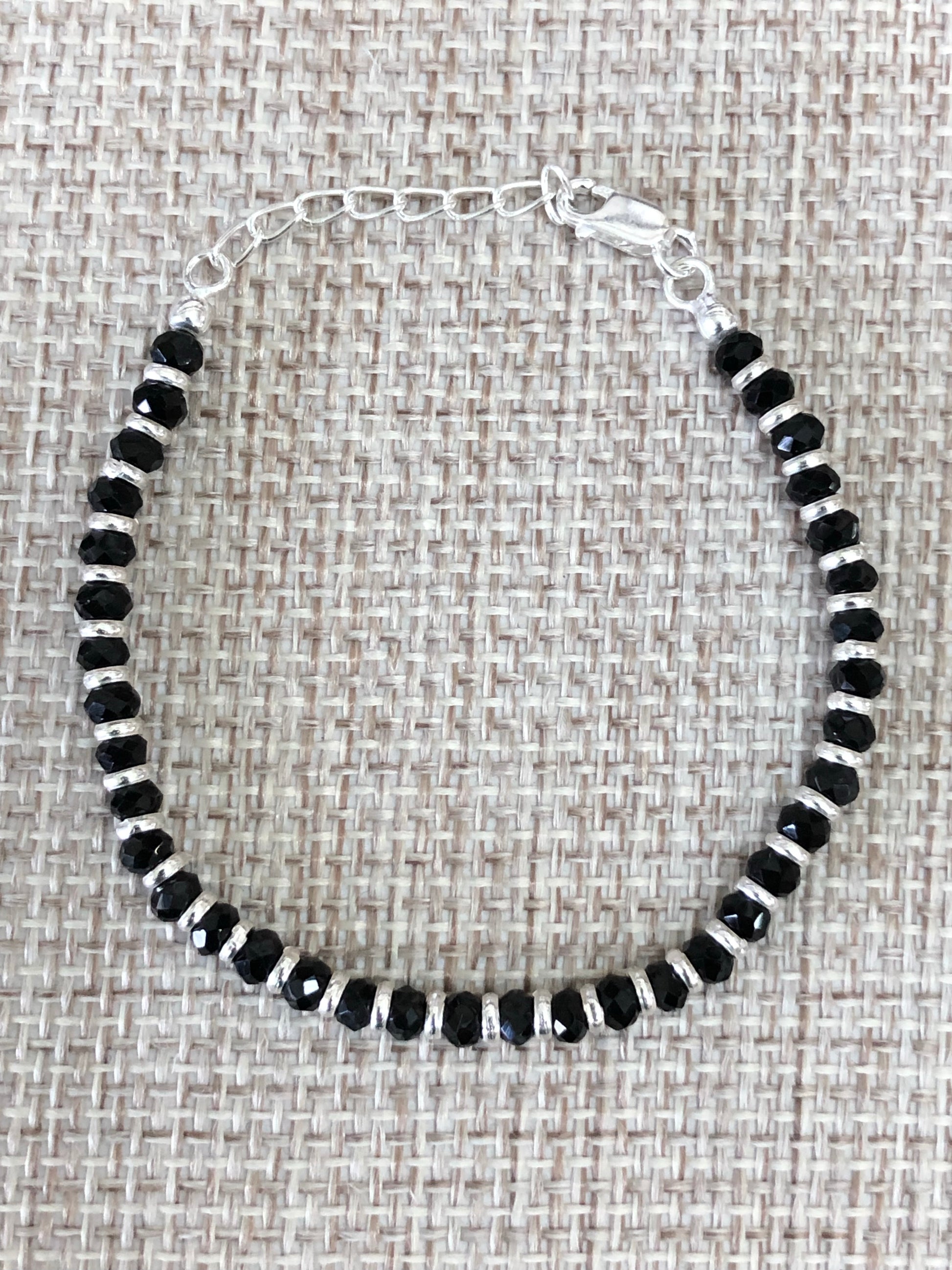 925 Sterling silver adjustable black and silver beads baby bracelet.