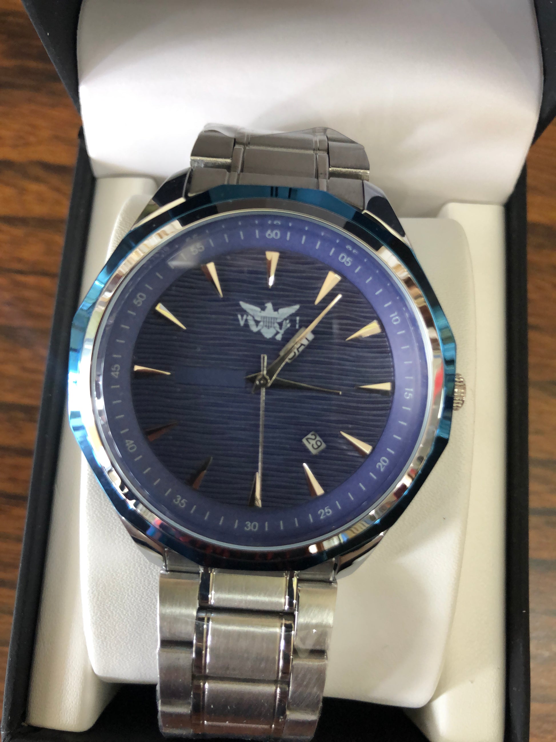 VI flag Men’s blue and silver color watch