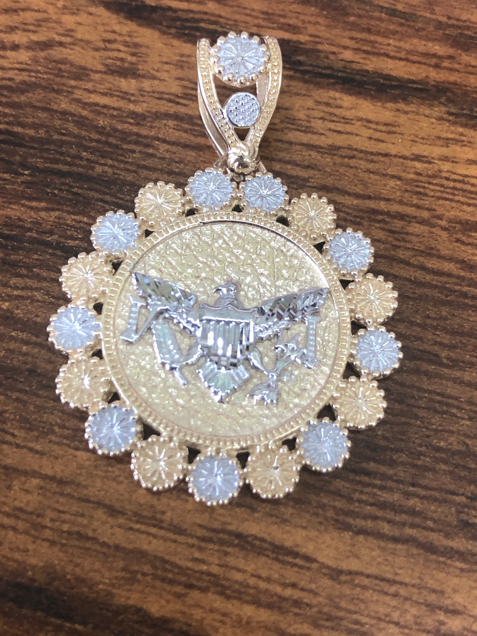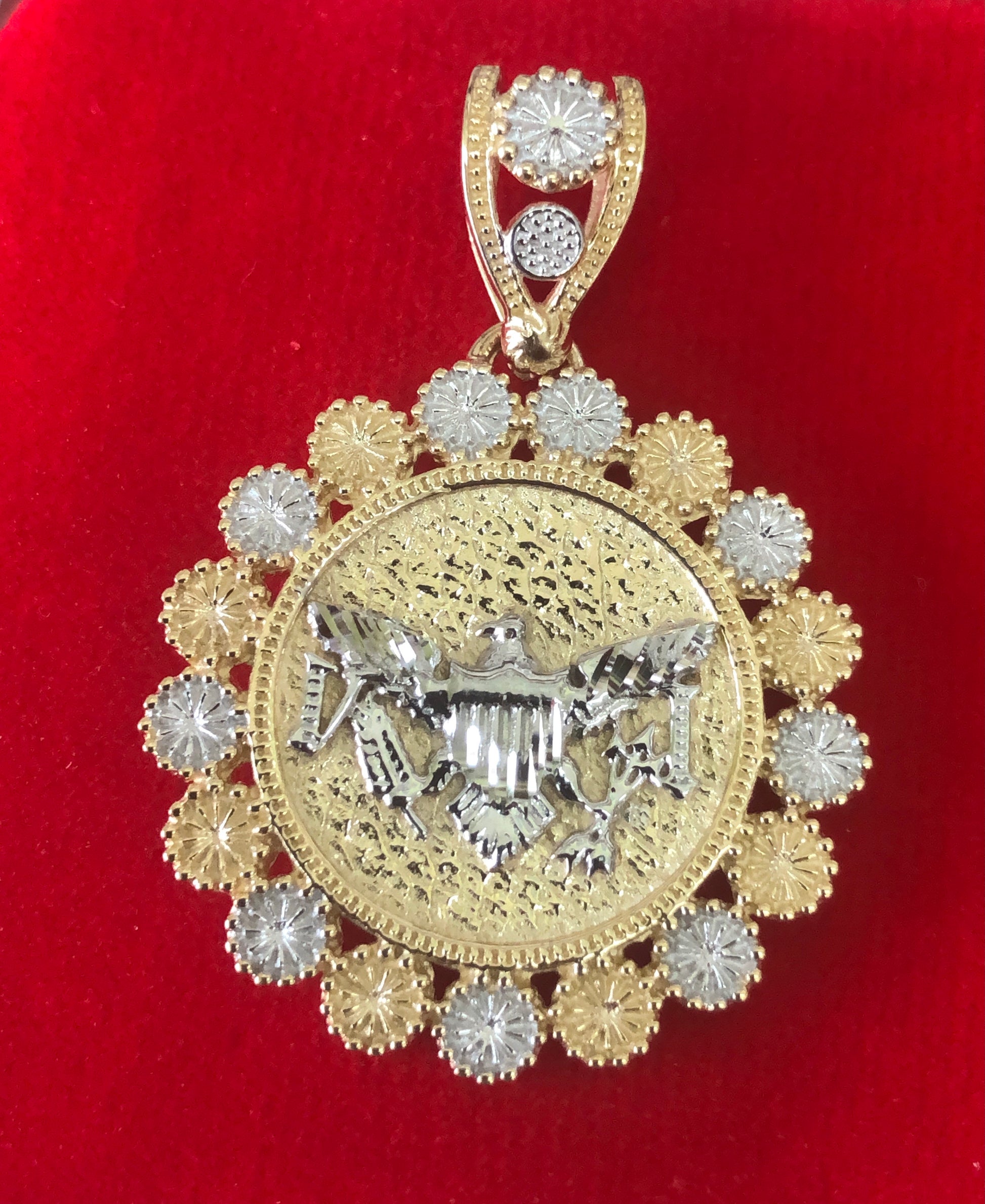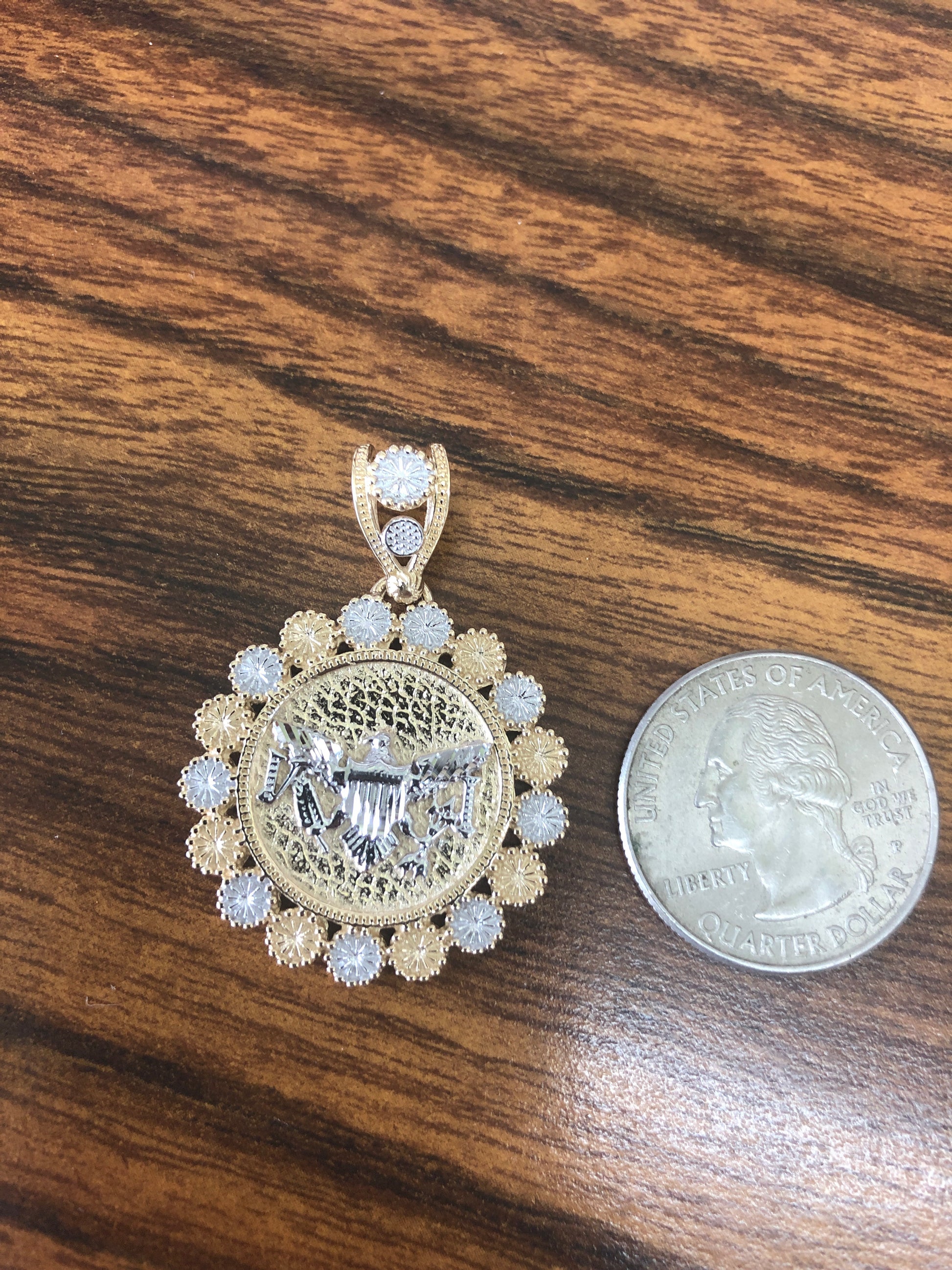 14 k gold pendant is 9.2 grams and 10K gold pendant is 7.7 grams.